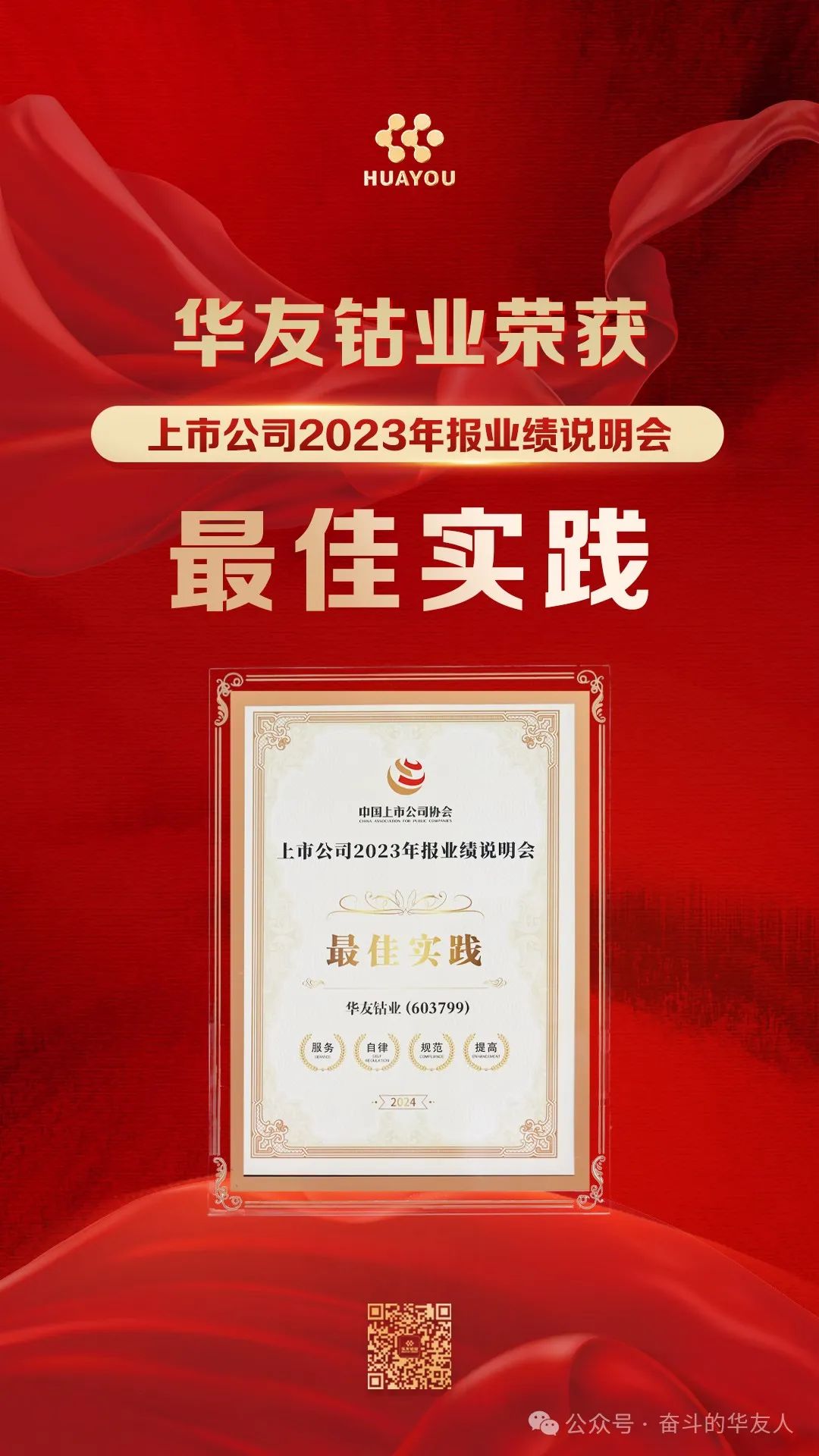 近日,由中國(guó)上市公司協(xié)會(huì)主辦的“并購(gòu)重組政策宣導(dǎo)暨產(chǎn)融對(duì)接會(huì)”在重慶舉行,會(huì)上揭曉了上市公司年報(bào)業(yè)績(jī)說(shuō)明會(huì)最佳及優(yōu)秀實(shí)踐系列獎(jiǎng)項(xiàng)評(píng)選結(jié)果。華友鈷業(yè)憑借2023年報(bào)業(yè)績(jī)說(shuō)明會(huì)的精彩表現(xiàn)和與投資者的積極溝通,在滬深北交易所5130家上市公司中脫穎而出,獲評(píng)“2023年報(bào)業(yè)績(jī)說(shuō)明會(huì)最佳實(shí)踐”。