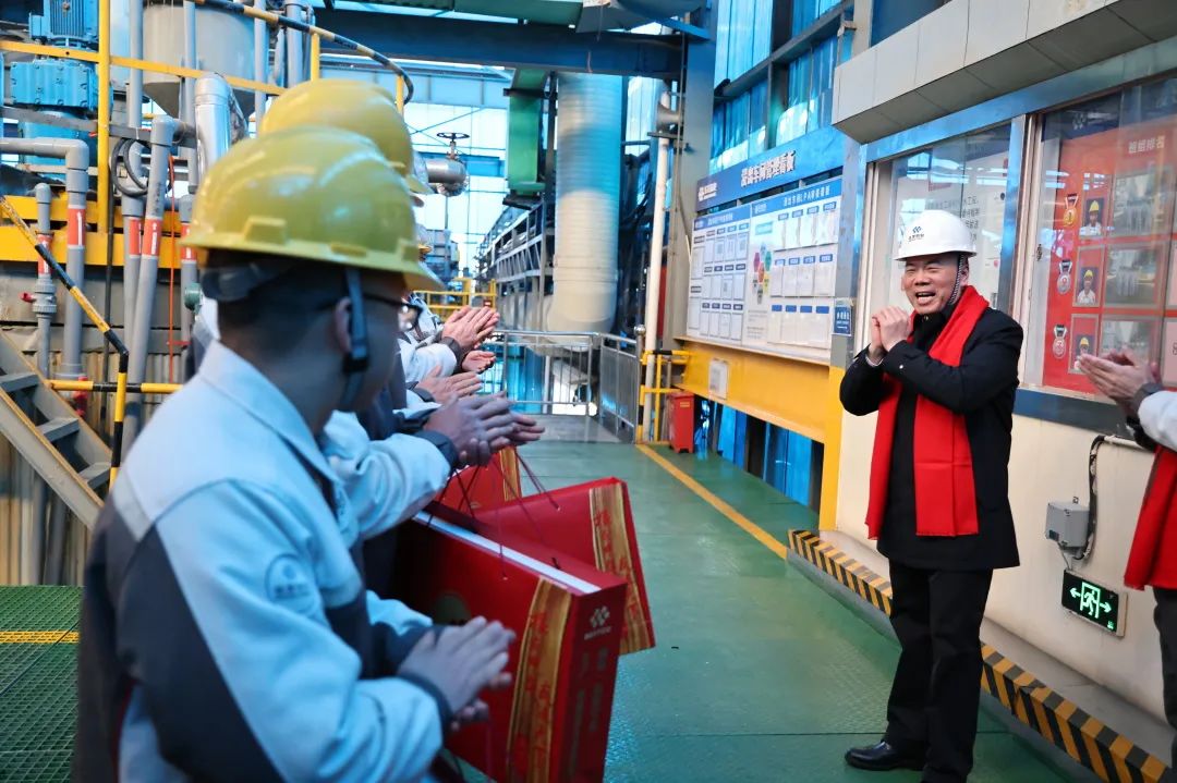 1月27日,華友新材料產(chǎn)業(yè)集團(tuán)開(kāi)展“年三十”慰問(wèn)在崗員工活動(dòng),集團(tuán)高級(jí)副總裁、新材料產(chǎn)業(yè)集團(tuán)總裁徐偉,新材料產(chǎn)業(yè)集團(tuán)副總裁劉秀慶深入生產(chǎn)制造一線、安環(huán)消防部門及研發(fā)單位等地,向在崗員工送去親切的慰問(wèn)和誠(chéng)摯的關(guān)懷,并衷心祝愿大家新的一年幸福安康、闔家歡樂(lè)、巳巳如意。