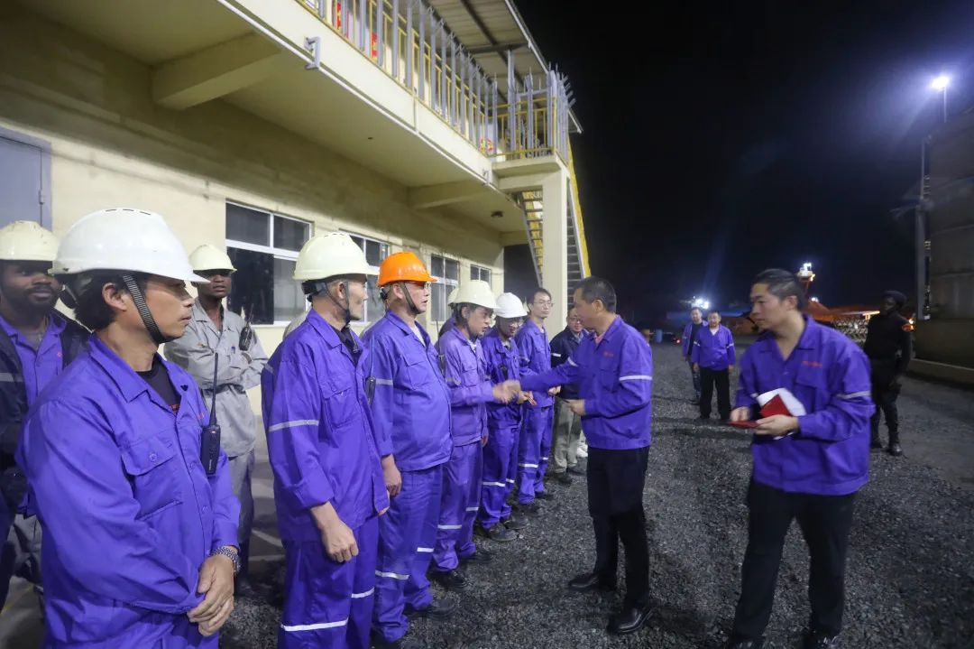 非洲資源產(chǎn)業(yè)集團(tuán)領(lǐng)導(dǎo)一行,帶著公司滿滿的關(guān)懷,奔赴各個(gè)值班崗位。每到一處,領(lǐng)導(dǎo)們都與員工親切握手,將承載著美好祝福的紅包和物資送到他們手中,讓堅(jiān)守在異國(guó)他鄉(xiāng)的員工們感受到家一般的溫暖。