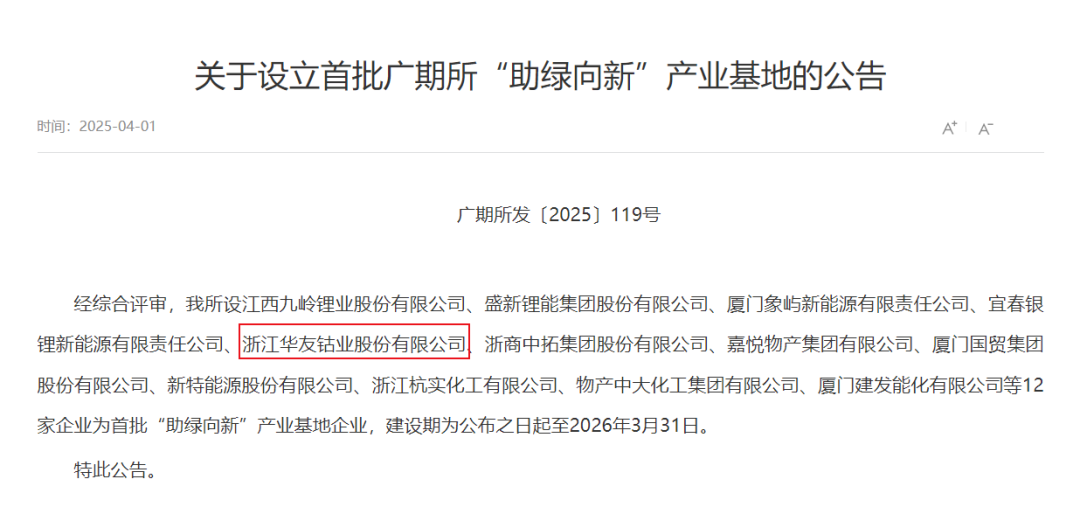 經(jīng)過全面而嚴(yán)格的資質(zhì)考察與遴選,華友鈷業(yè)憑借其在新能源領(lǐng)域的卓越表現(xiàn)和強(qiáng)大的綜合實(shí)力,成功獲批成為廣期所首批“助綠向新”產(chǎn)業(yè)基地,開啟了綠色低碳發(fā)展的新征程。