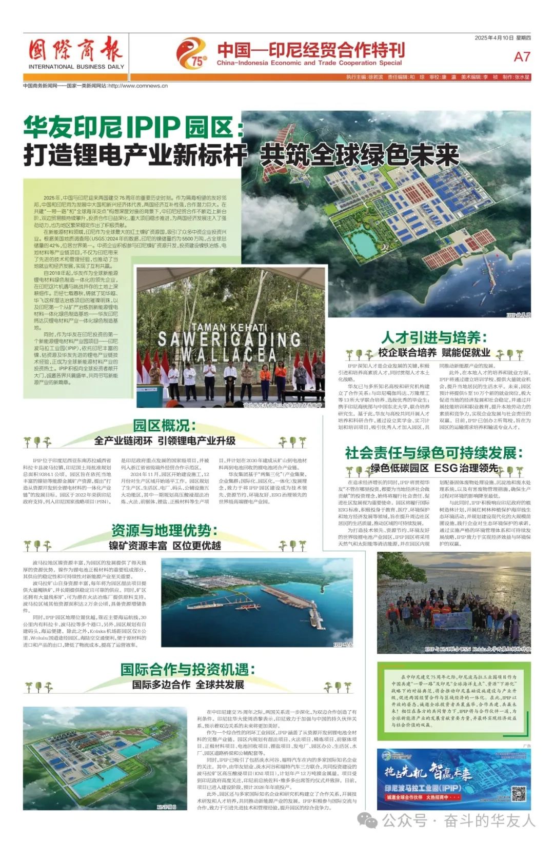 《國際商報》特刊——華友印尼IPIP園區(qū): 打造全球鋰電產(chǎn)業(yè)新標桿,共筑綠色未來